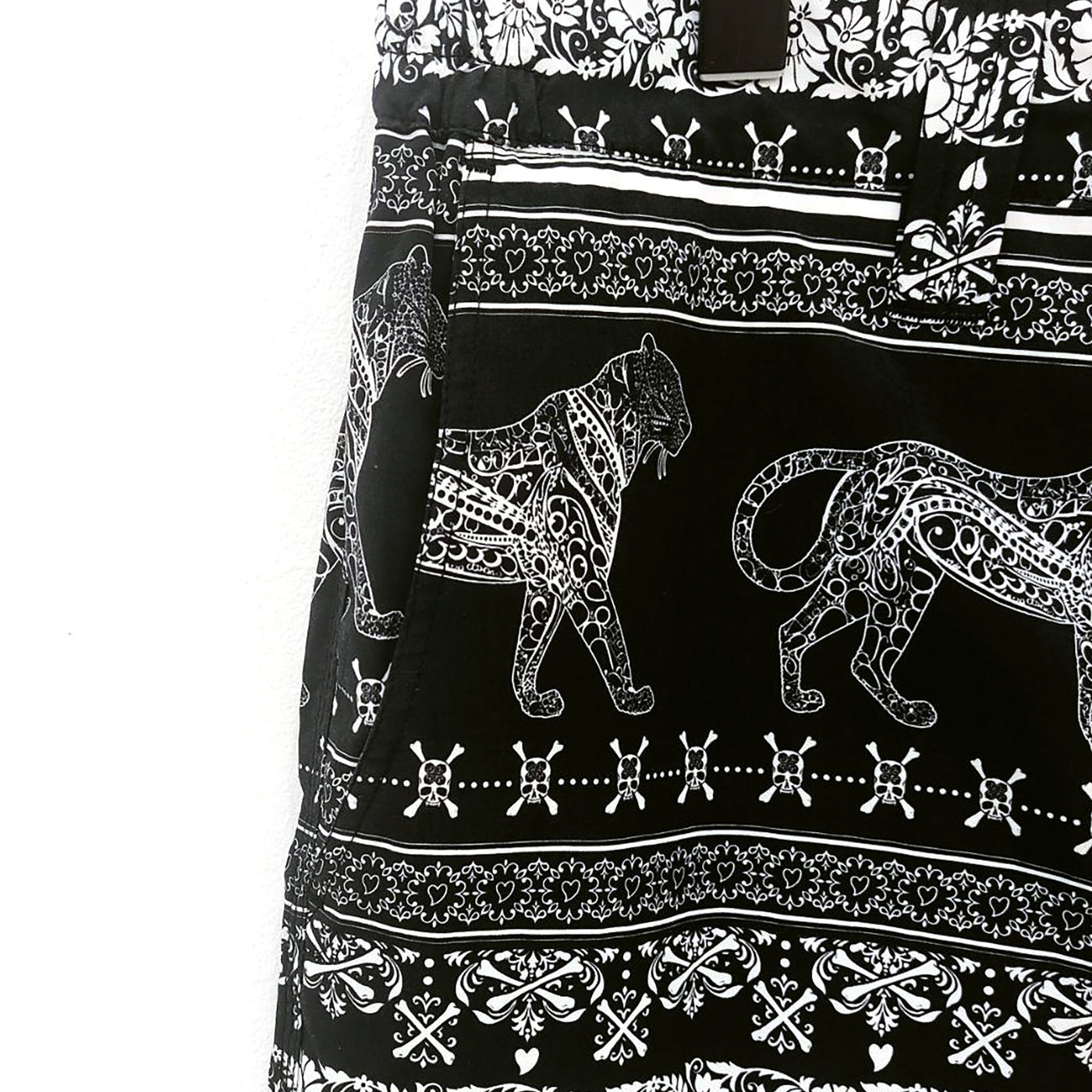 新型のパターン柄で組まれたサルエル調のパンツ。