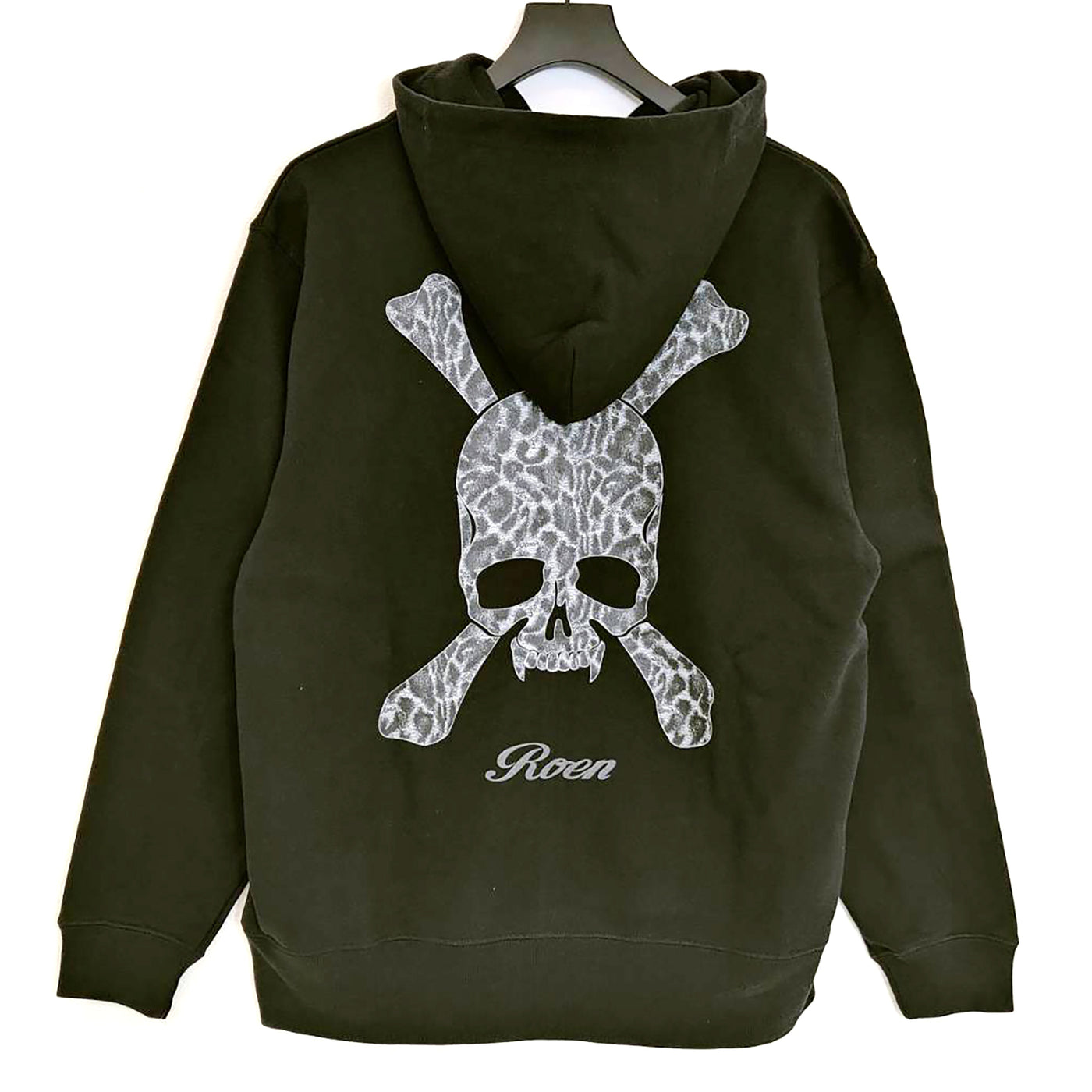 バックには定番のスカルに落ち着いた配色のレオパード柄がバックに落とし込まれた、