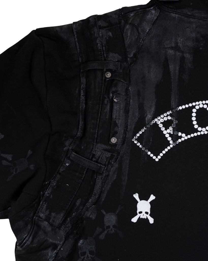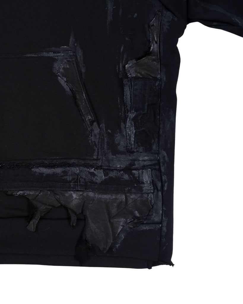 ボディ全体にコーティング加工し、一部を異素材デニムやレザーを貼り付けるなど細部まで拘ったギミックが施されております。