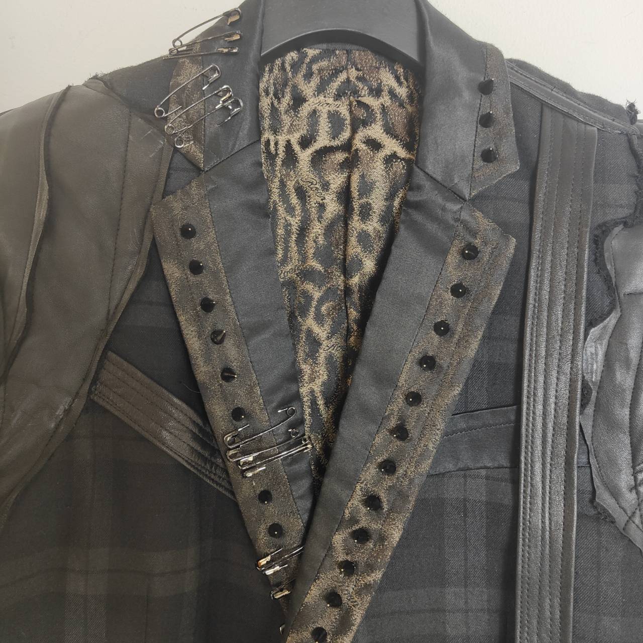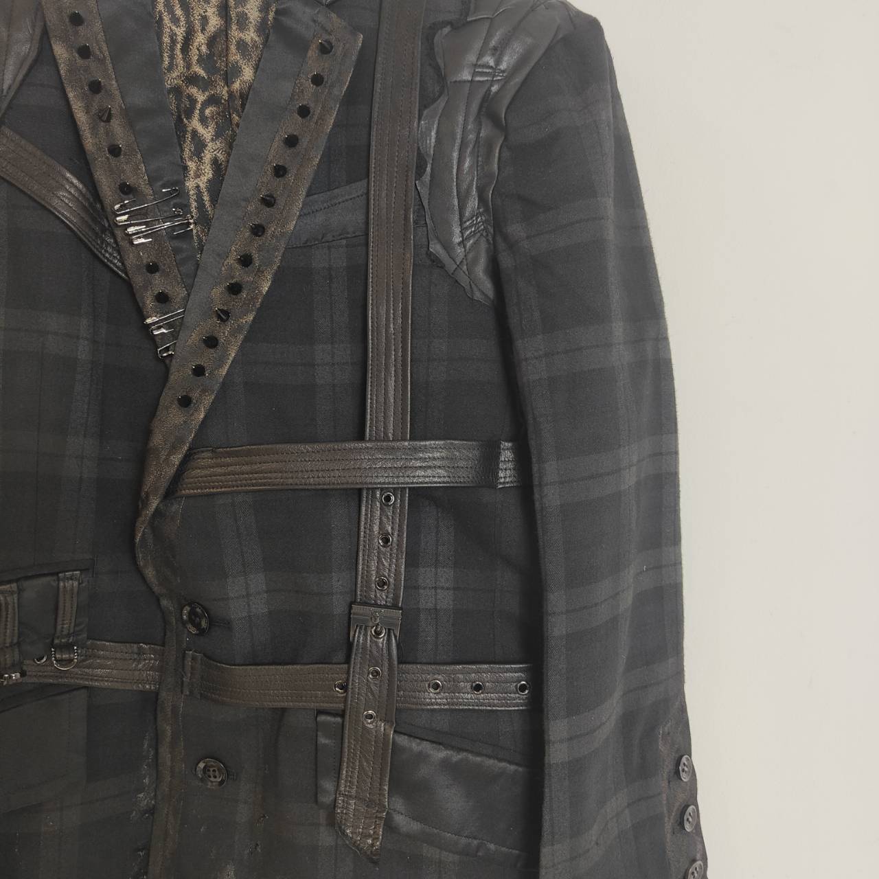 肩部分にカウレザー、前身頃から後ろ身頃にかけてレザー製ハーネスや