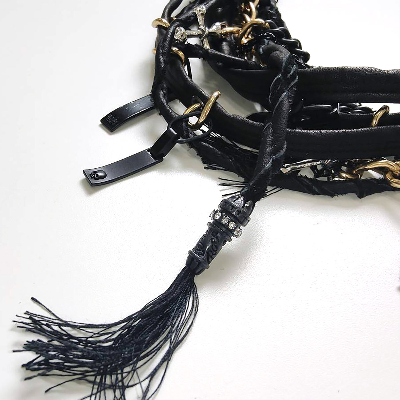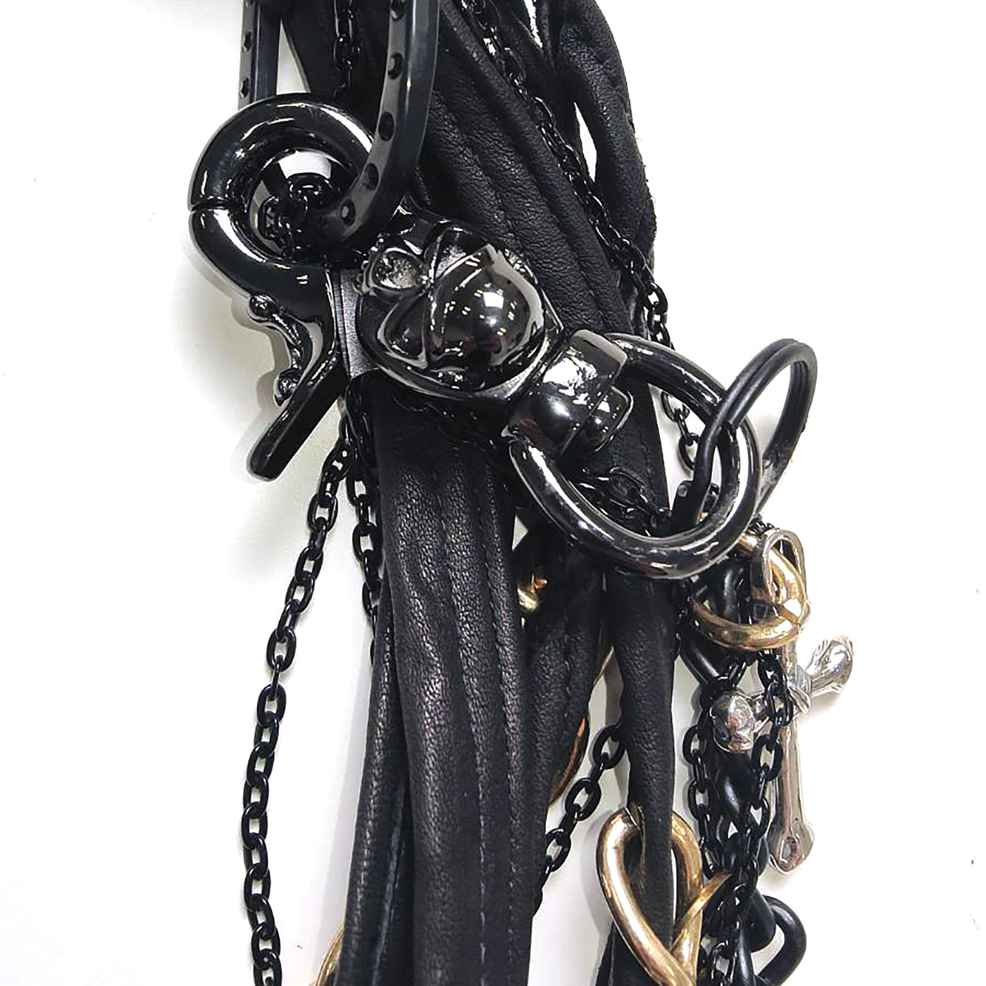 柔らかいカウレザーをふんだんに使用、別素材のチェーンや,