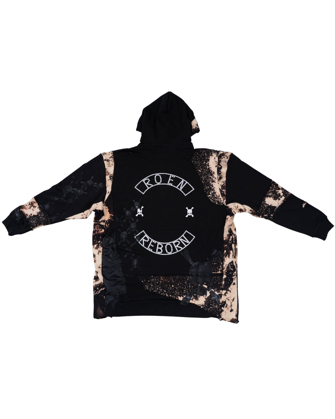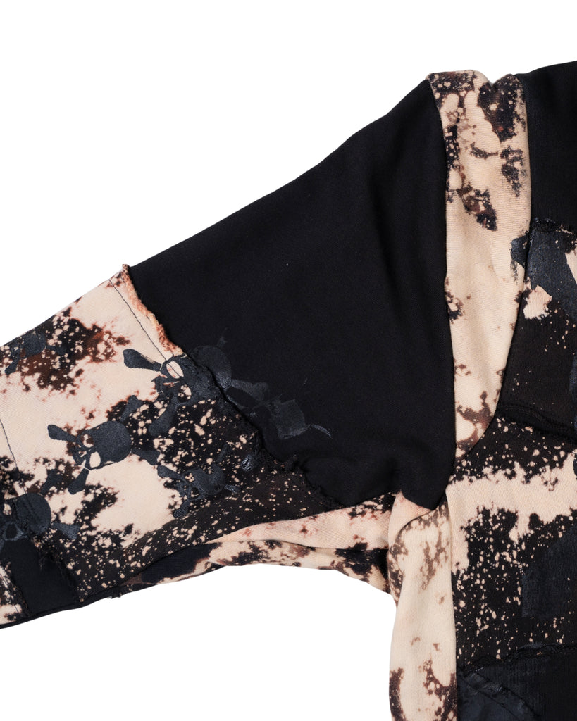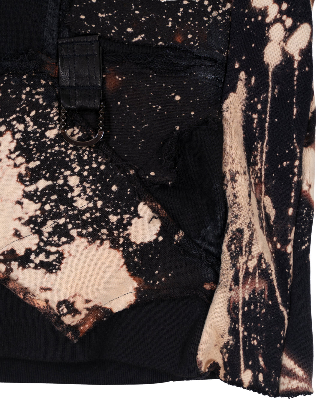 フード、ボディ、袖の切替し部分にブリーチ加工とそうでない生地をスイッチングした手の込んだ作り込みになっております。