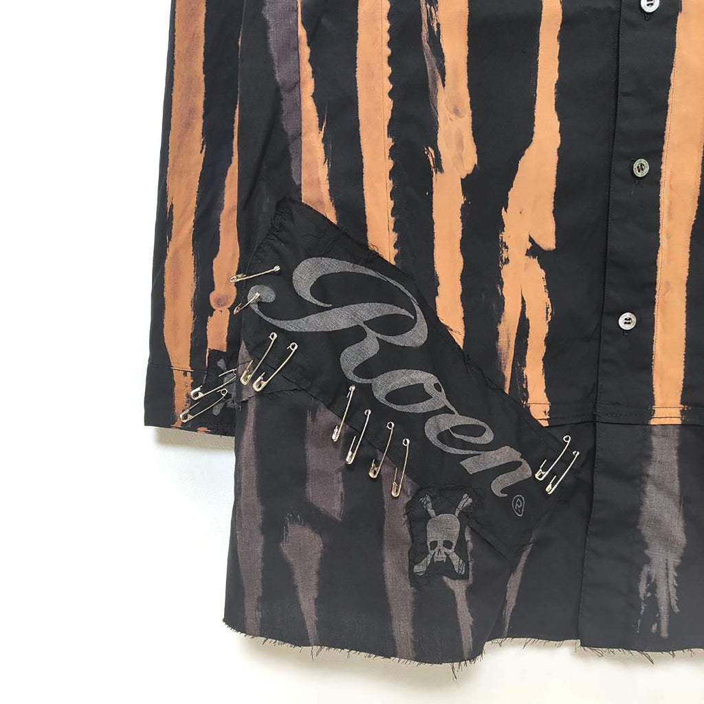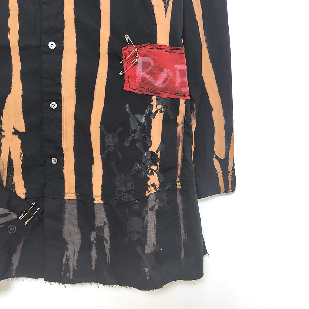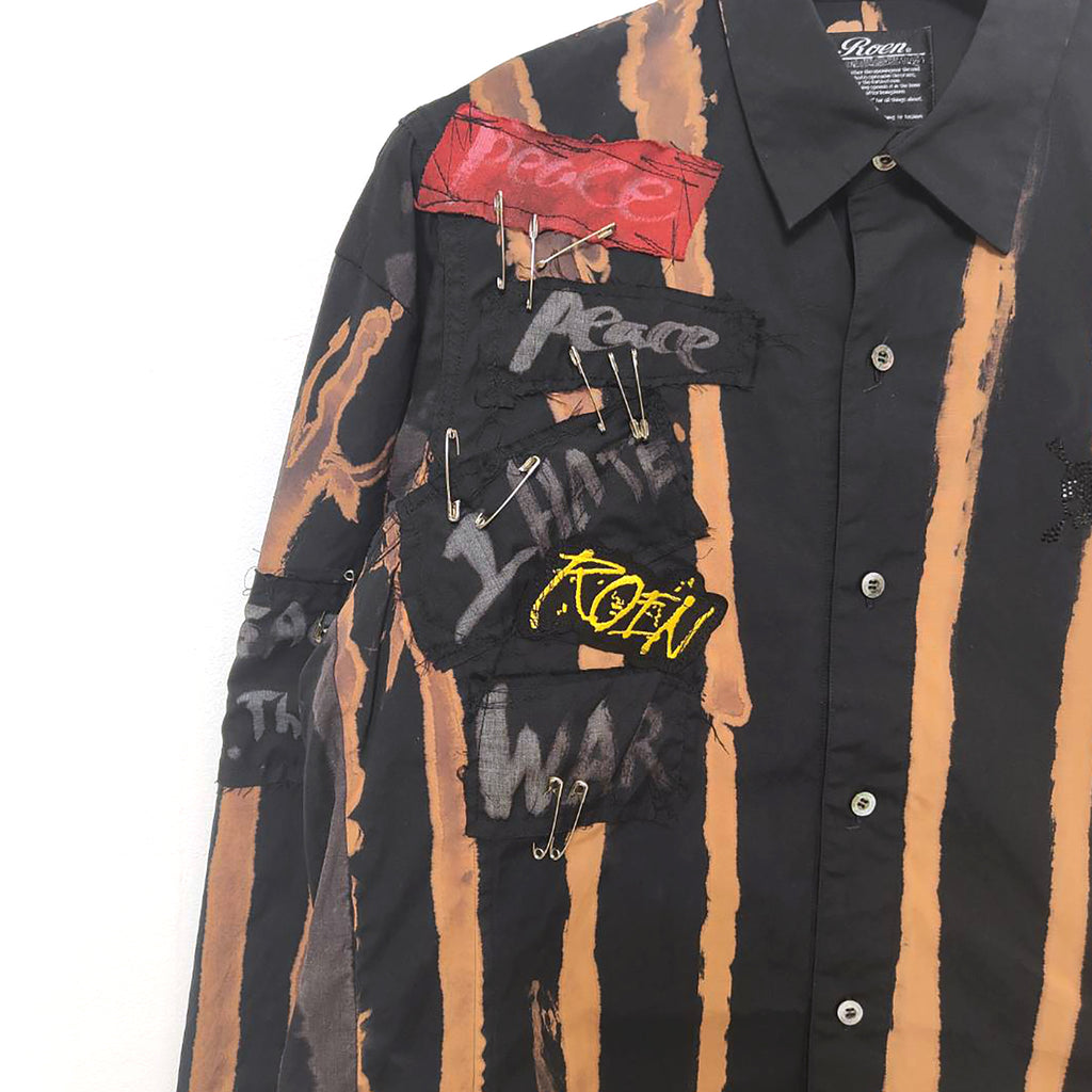 シンプルなカッターシャツを大胆にロンドンパンク風のシャツへリメイク。