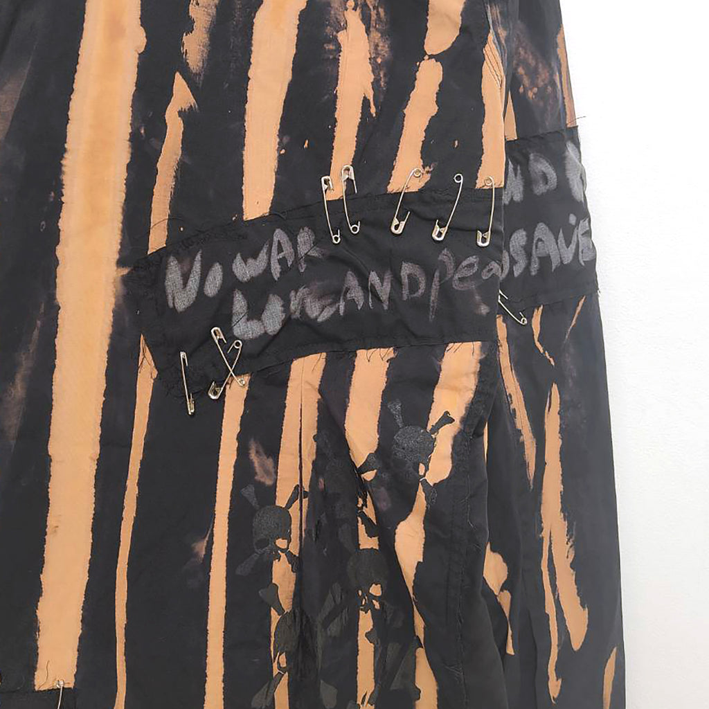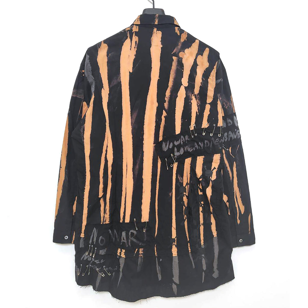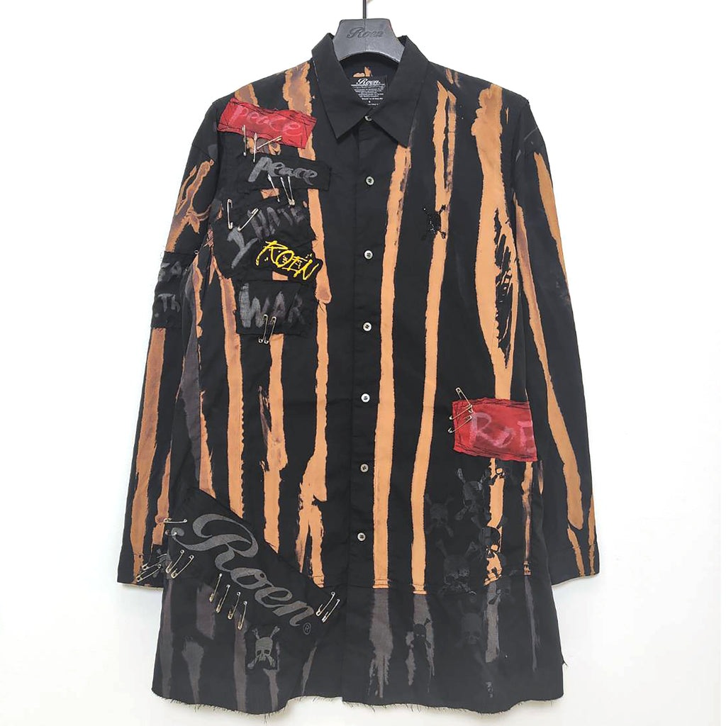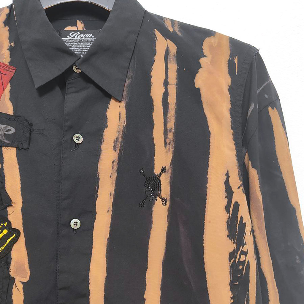 シンプルなカッターシャツを大胆にロンドンパンク風のシャツへリメイク。