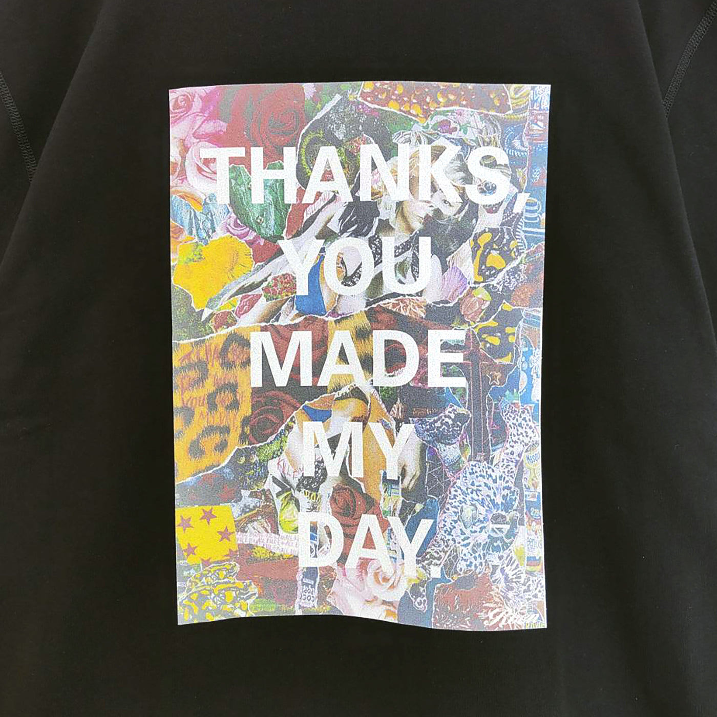 古着風にかすれプリントし、上にメッセージを乗せたグラフィックメッセージT。
