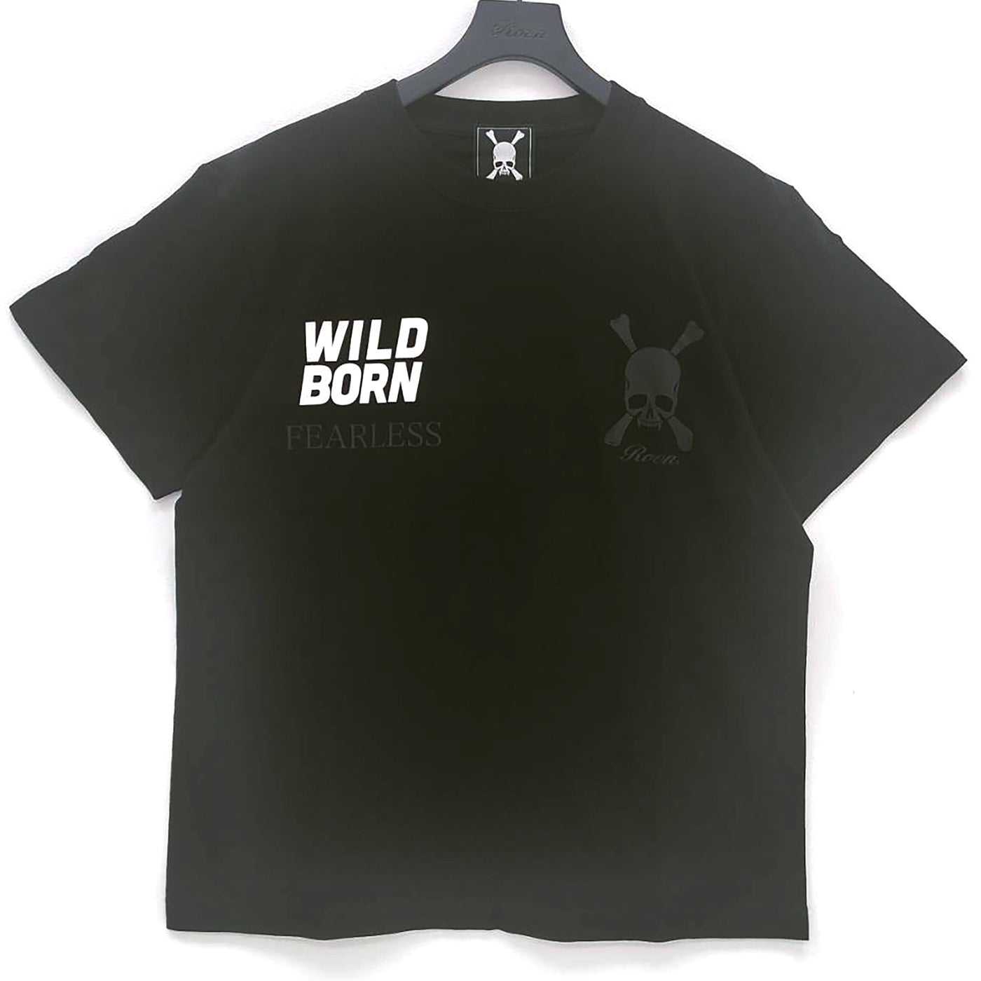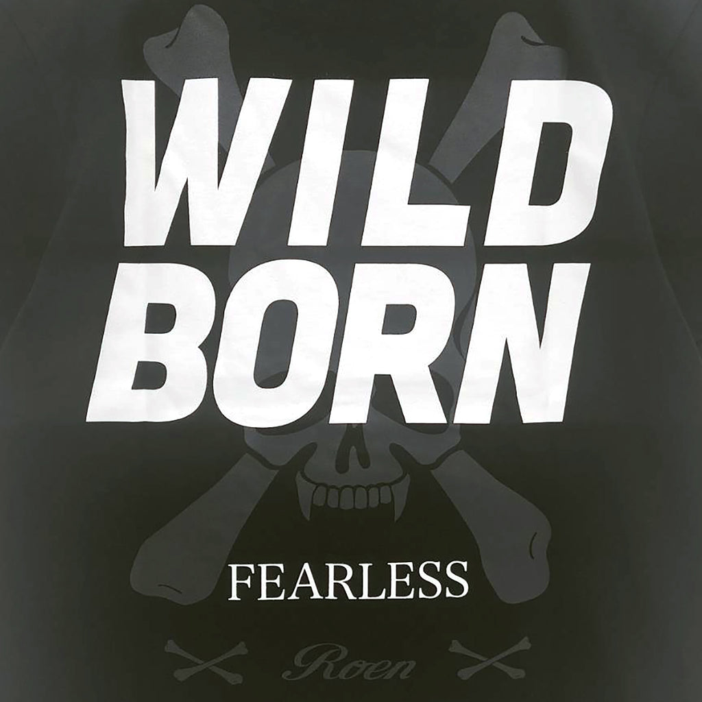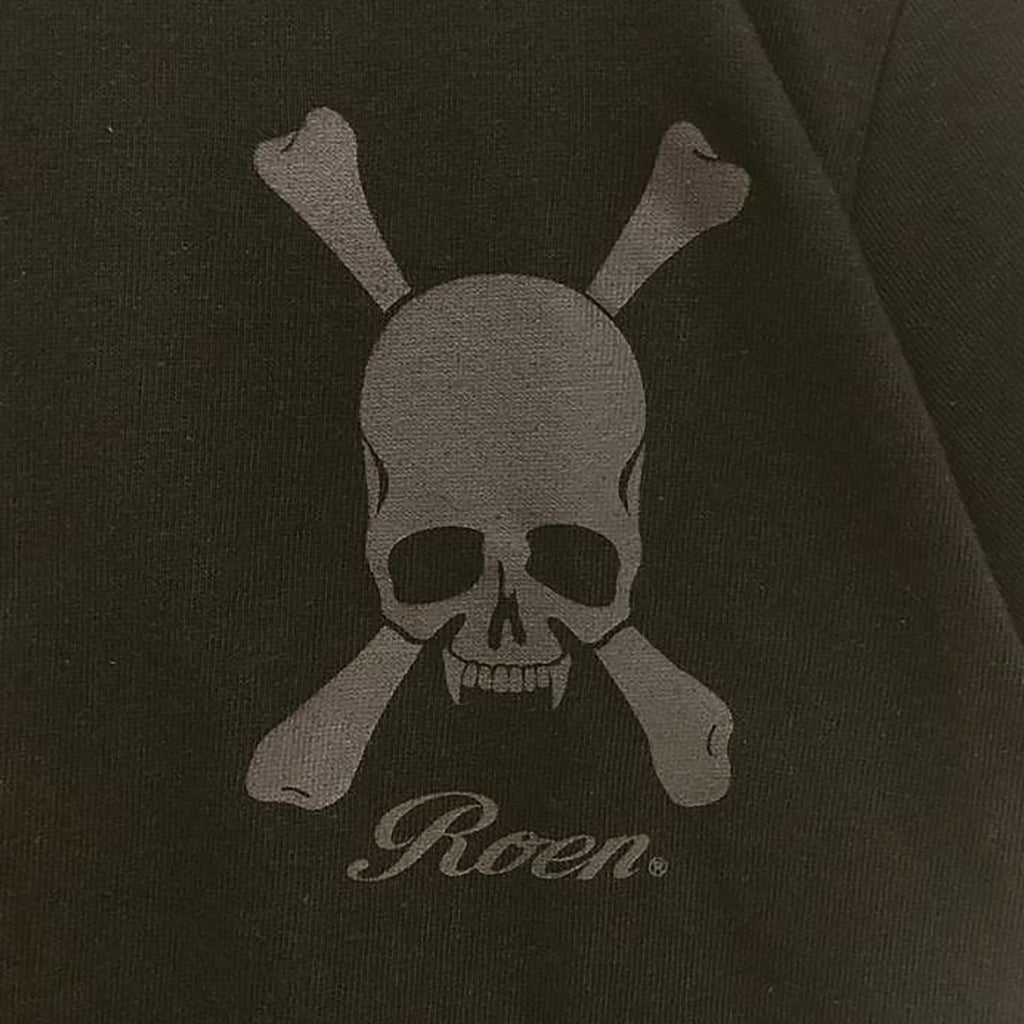 Roenを代表される陰影スカルとロゴ、クロスボーンを前身頃の中央に配置し、